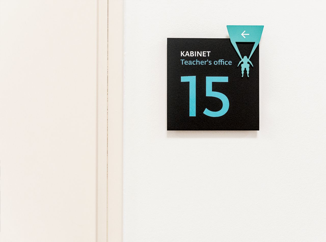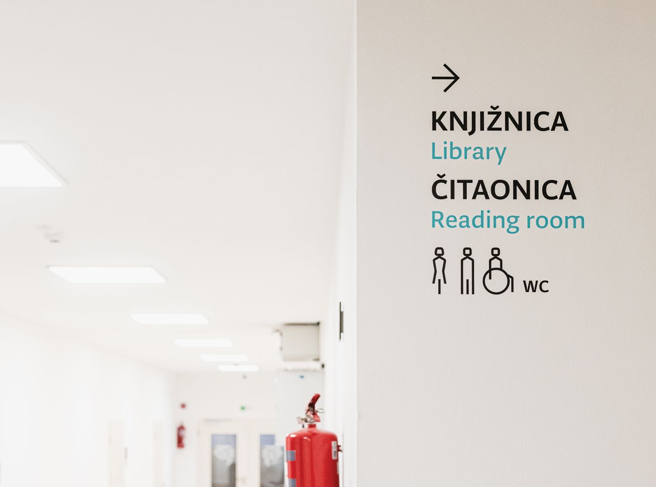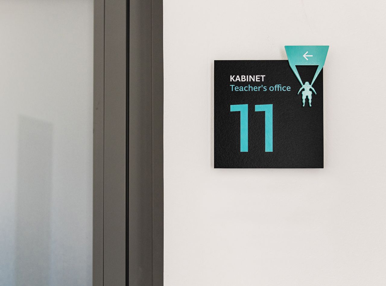 Sustav unutarnje signalizacije oblikovan je za jasno i intuitivno snalaženje u prostoru Veleučilišta u Šibeniku. Temelji se na jednostavnoj tipografskoj hijerarhiji i modularnom sustavu oznaka koji se prilagođava različitim dijelovima zgrade.