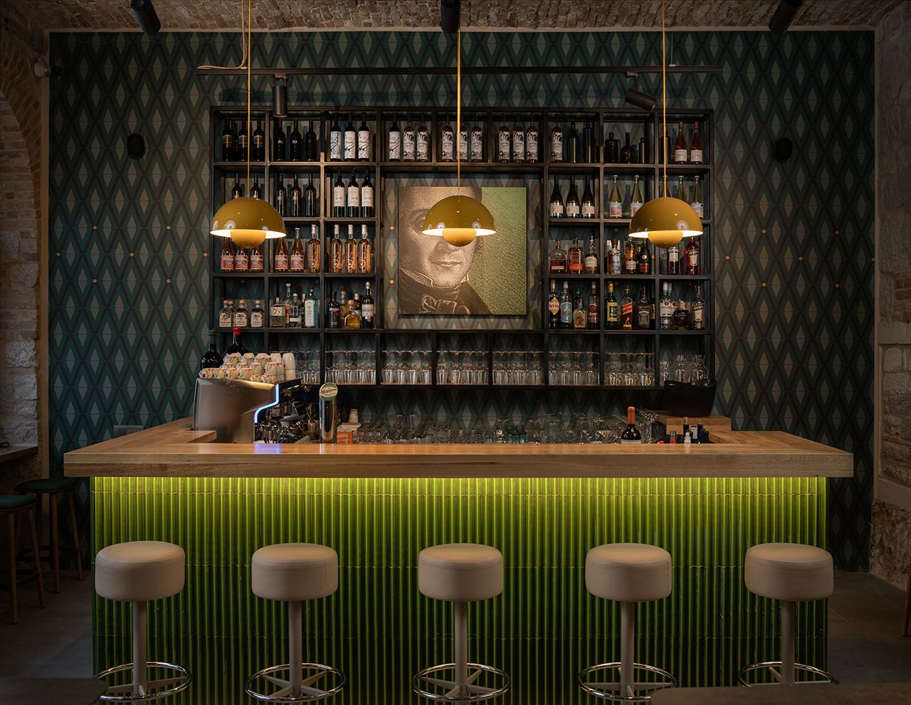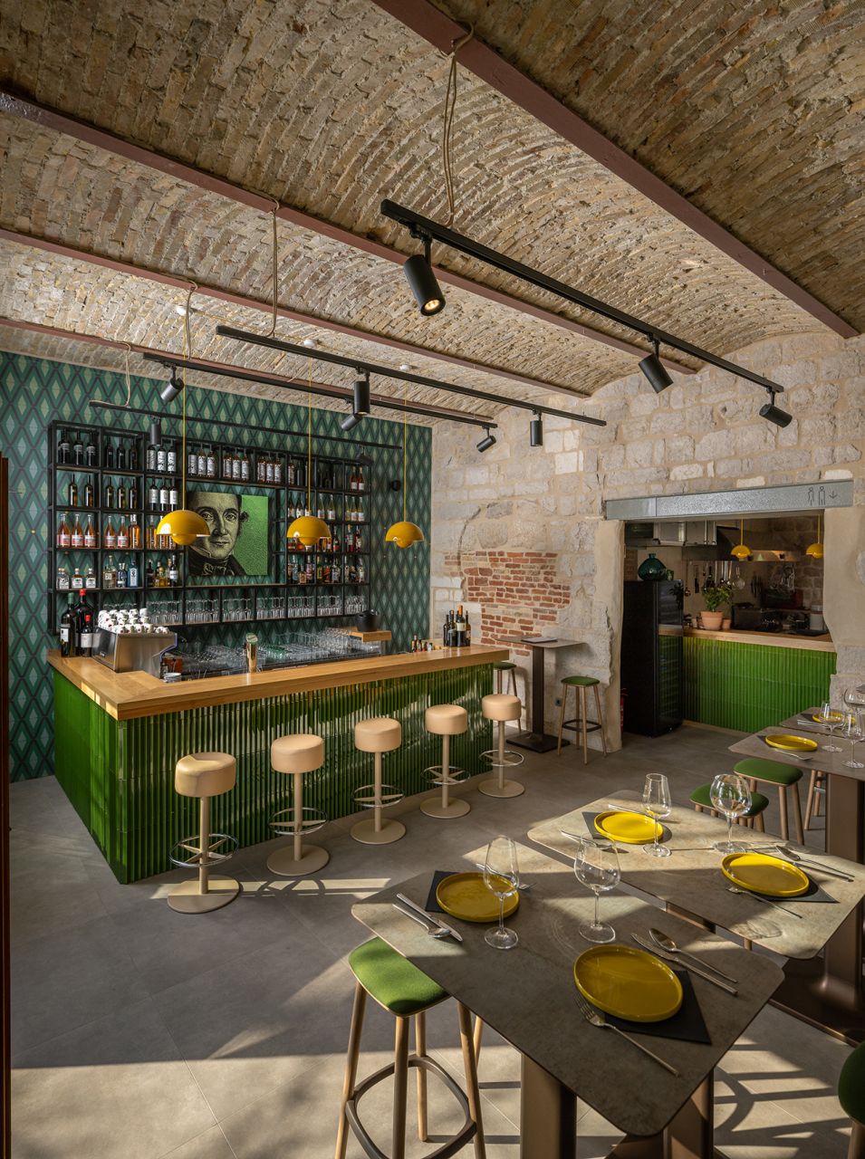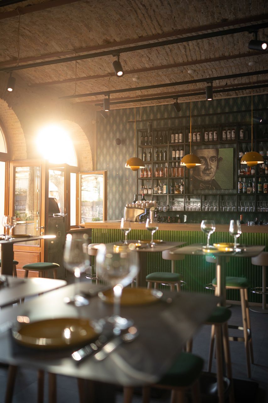 Projekt obuhvaća oblikovanje interijera i vizualnog identiteta kroz izbor materijala, boja, rasvjete i detalja te dizajn grafičkih elemenata u prostoru. Dizajn je razvijen u neposrednom odnosu s lokacijom i slojevitim kontekstom prostora u povijesnoj urbanoj strukturi.